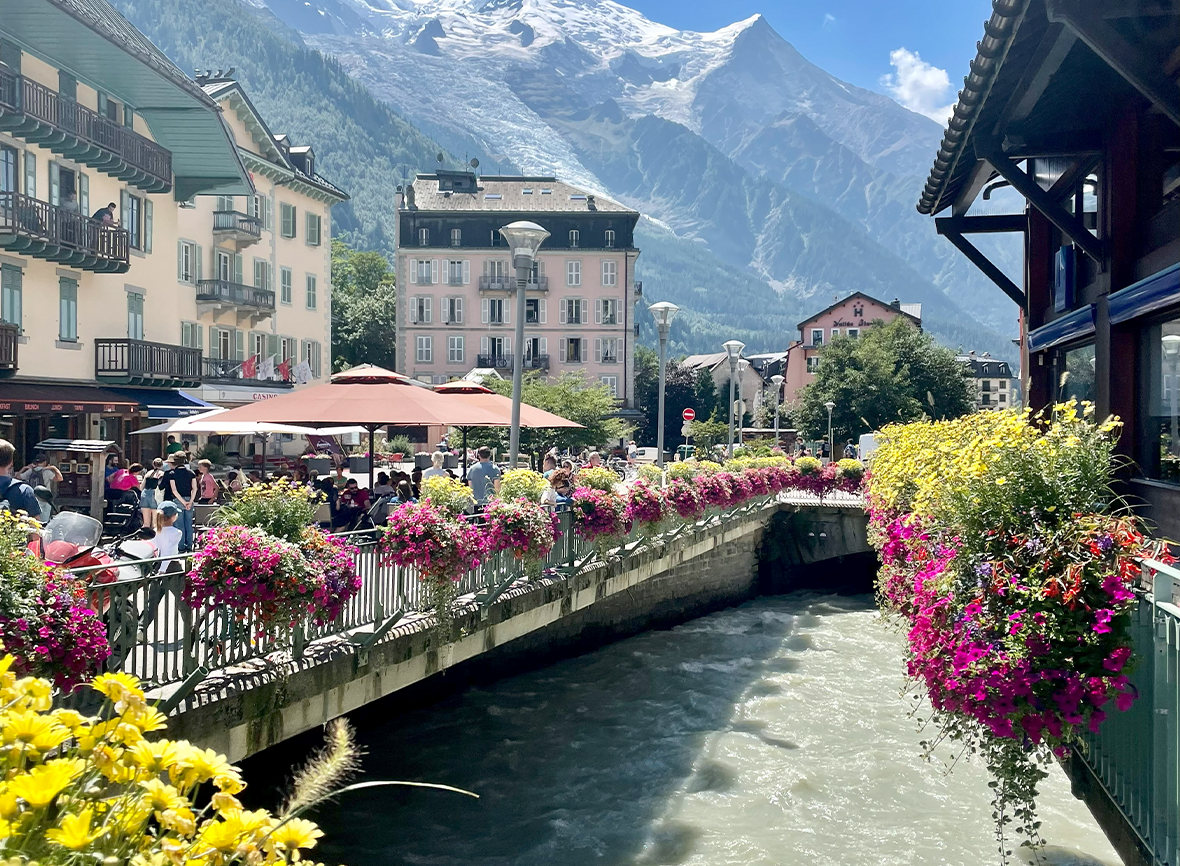 Chamonix er rigtig varmt, herligt og livligt om sommeren. Her bor du på Langley Hotel Gustavia, som er et meget velkendt hotel, lige ved togstationen i Chamonix.