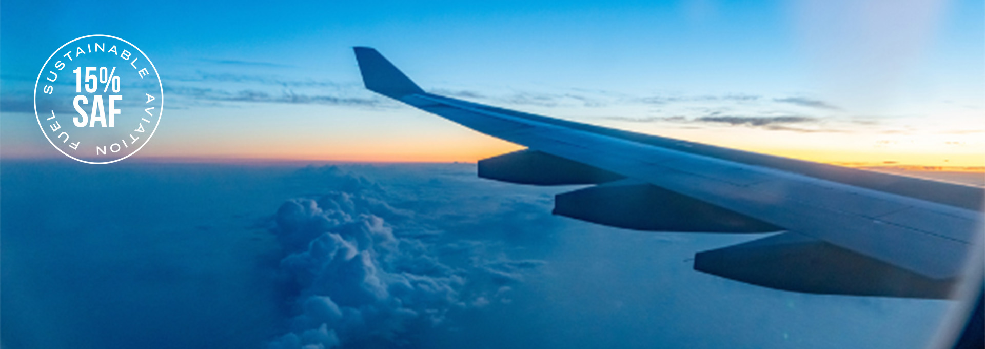 Bærekraftig flydrivstoff, eller SAF, er et mer miljøvennlig alternativ til det fossile Jet A1‑drivstoffet som normalt brukes. Akkurat som bilindustrien går mot elektrisitet, arbeider luftfartsindustrien med å gradvis erstatte fossilt drivstoff med SAF. Når du flyr med SAF reduseres CO₂‑utslippene og du bidrar til at mindre CO₂ slippes ut.